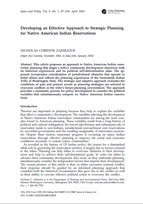 Developing an Effective Approach to Strategic Planning for Native American Indian Reservations