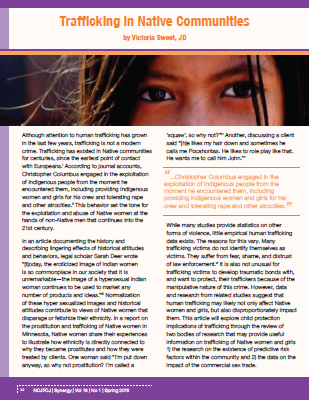 This excerpt from the National Council for Juvenile and Family Court Judges newsletter provides a brief look at sex trafficking in Native communities, including risk factors, data, and recommendations.